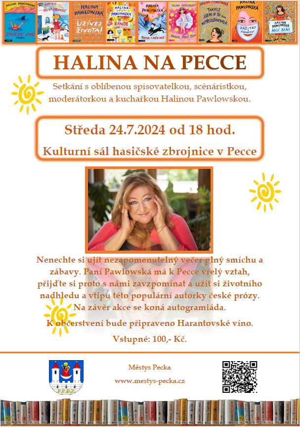 Setkání s oblíbenou spisovatelkou, která má vřelý vztah k Pecce, se konalo 24.7.2024 na sále hasičské zbrojnice.