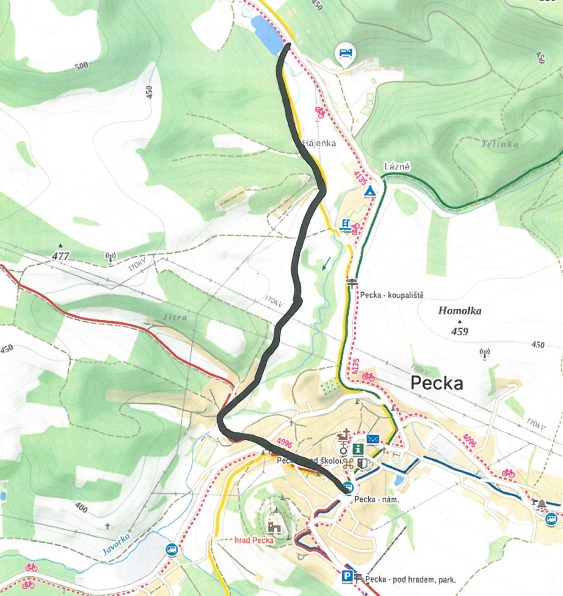 V těchto dnech se pracuje na úpravě této cesty, která od hráze rybníka Wolfák vede okolo koupaliště, kde na ni ze stanové plochy budou vstupovat ubytovaní hosté. Dále vede po polní cestě na Žižkov, podél fotbalového hřistě, bývalého mlýna a pivovaru nahoru na náměstí. Přecházet hlavní cestu budou lidé u školy.