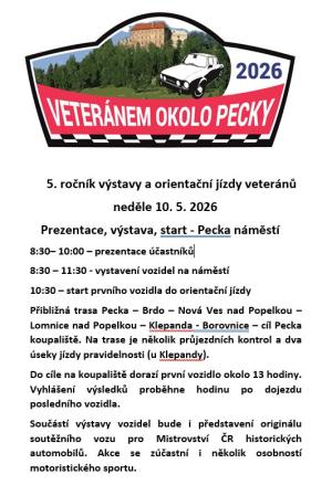 5. ročník - výstava a orientační jízda auto a motoveteránů - náměstí Kryštofa Haranta, cíl Koupaliště a kemp Pecka. Startovka již naplněna!