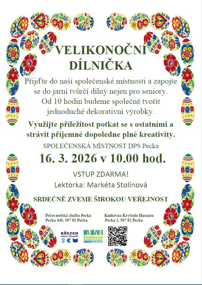 Tvůrčí dílna s lektorkou Markétou Stolínovou. Vstup zdarma. Více na www.knihovnapecka.cz