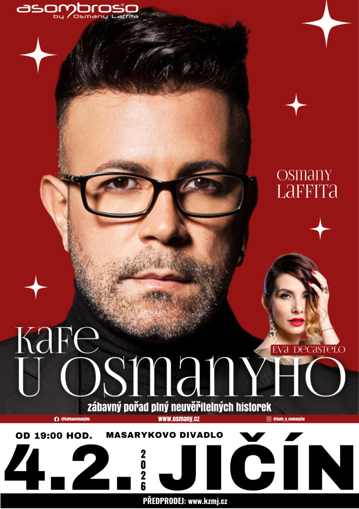 Předprodej vstupenek v Městském informačním centru na Valdštejnově náměstí v Jičíně a online na www.kzmj.cz. https://kzmj.cz/sekce-divadlo/kafe-u-osmanyho/